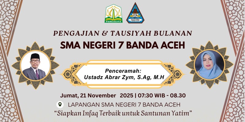 Banda Aceh — SMAN 7 Banda Aceh kembali melaksanakan kegiatan kajian rutin Jumat pagi pada Jumat, 21 November 2025, yang bertempat di lapangan SMAN 7 Banda Aceh. Kegiatan ini diikuti oleh seluruh siswa, guru, dan tenaga kependidikan dengan penuh khidmat dan antusias.